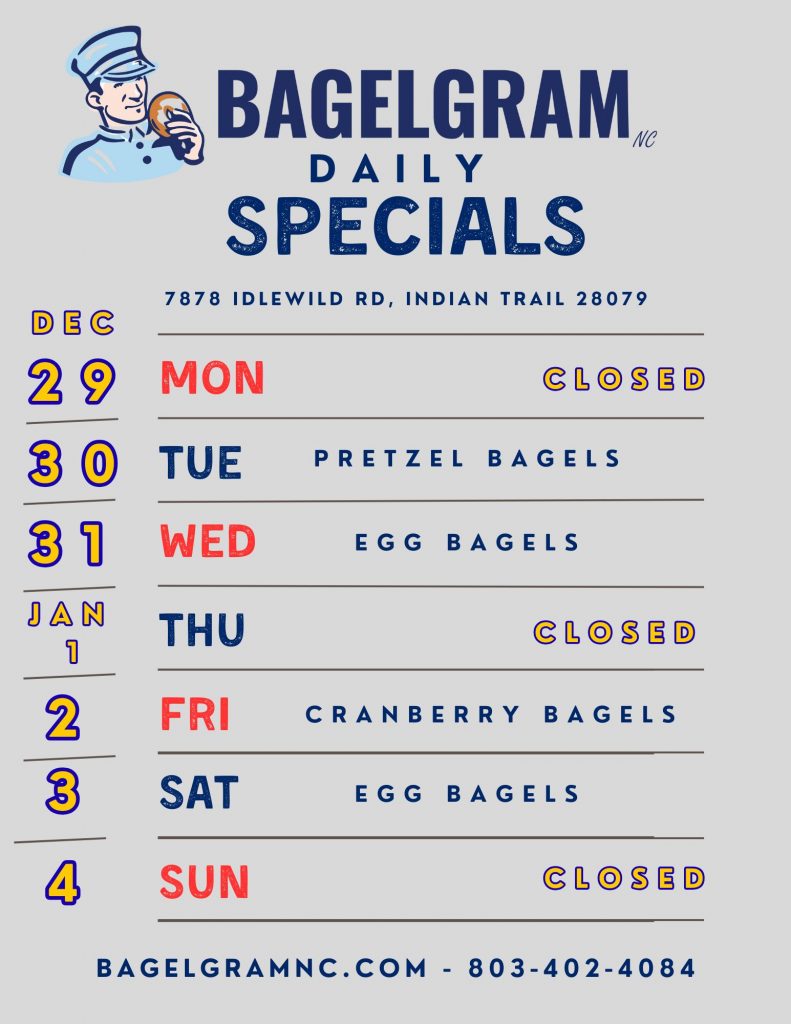 Purchase E-Gift Cards for BagelGram delivery to most areas of Charlotte HERE.