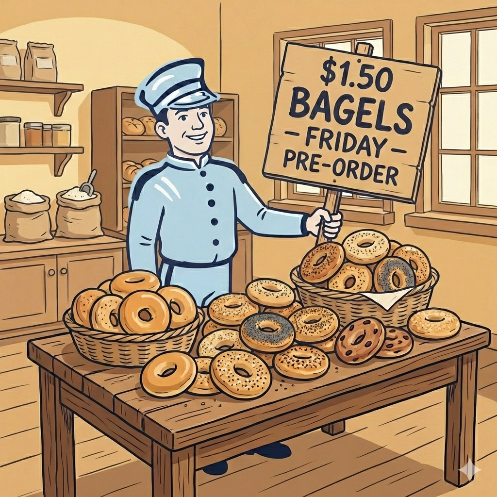 To make sure you don’t miss out, bagels are just $1.50 each when you pre-order for