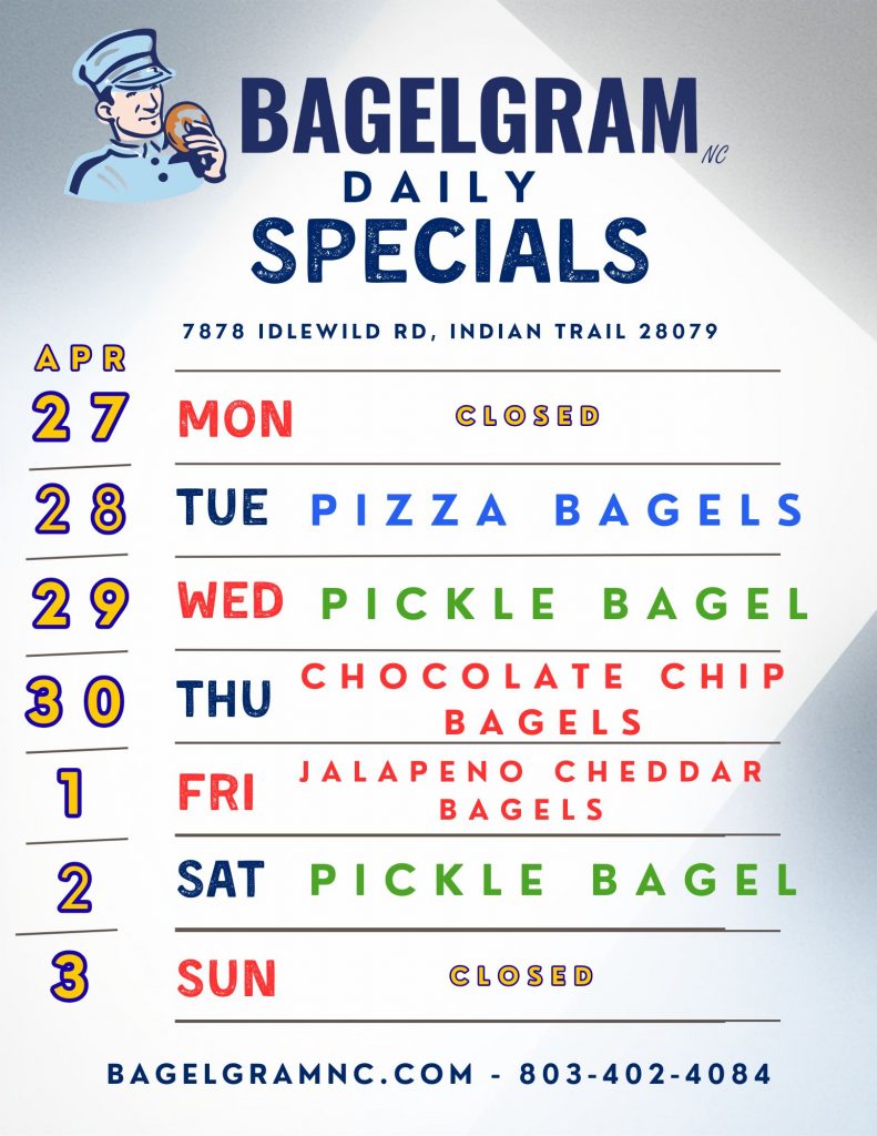 Purchase E-Gift Cards for BagelGram delivery to most areas of Charlotte HERE.